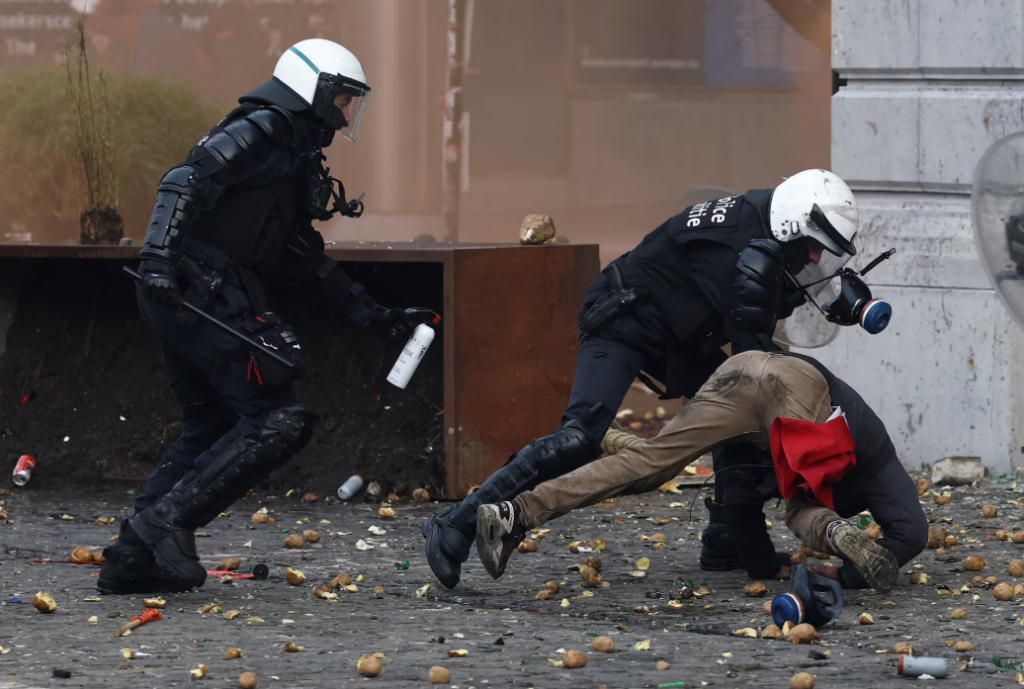El acuerdo comercial con Mercosur vuelve a estar en el punto de mira, y en vísperas de su ratificación. La crisis con los agricultores también se expresó claramente en Bruselas, Belgium, en las inmediaciones del Parlamento Europeo y la Plaza Luxemburgo. Thursday 18 de diciembre los agricultores belgas bloquearon el centro de la ciudad con sus tractores, prendieron fuego neumáticos y realizaron otras acciones para expresar su rechazo al acuerdo comercial entre la UE y Mercosur y a la nueva propuesta presupuestaria del Ejecutivo comunitario, que plantea un recorte a las ayudas regionales y agrícolas. Hubo violentos enfrentamientos y cargas policiales durante varias horas, con un herido grave por la represión.